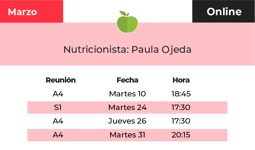 Horarios de Seguimiento y Afianzamiento en Sede Centro Marzo